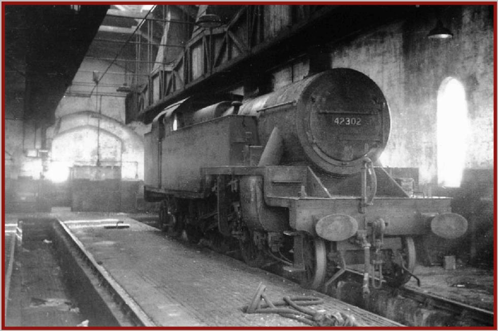 After 34 year's service on the St Pancras suburban service, the 1927-built Fowler 2-6-4 Tank 42302 languishes in the back of St Albans locomotive shed awaiting its final journey to the scrapyard.