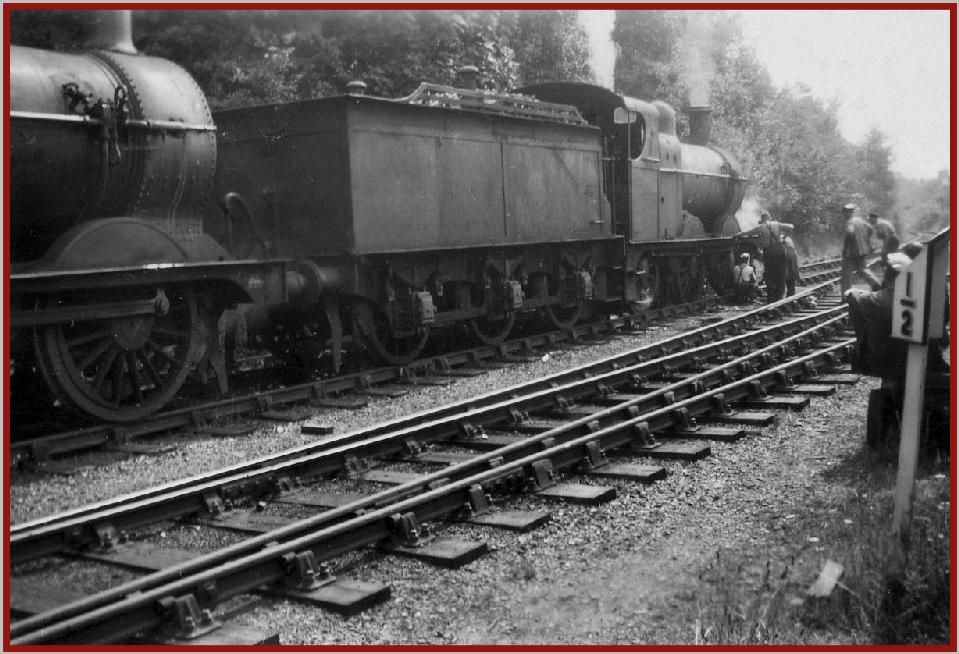 De-railed 43782 being rescued by 43865 in Hemel Hempstead (Midland) Station loop in 1955