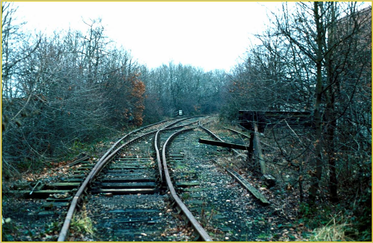 Looking back towards Redbourn with the sidings and the points onto the branch line providing a run round loop. The white fence is where the factory entrance road bridge was.