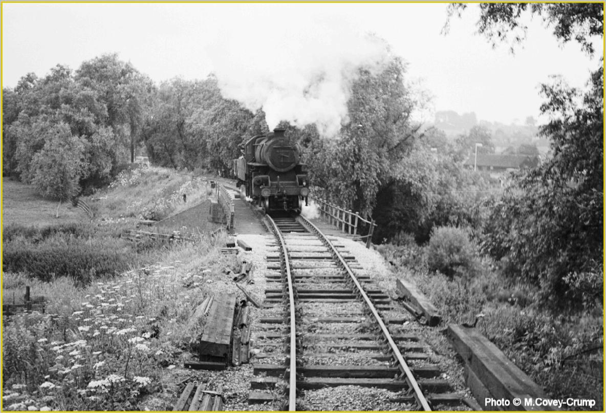 43031 crossing the River Bulbourne Bridge towards the London Road Bridge and Hemel Gas Works Sidings.
