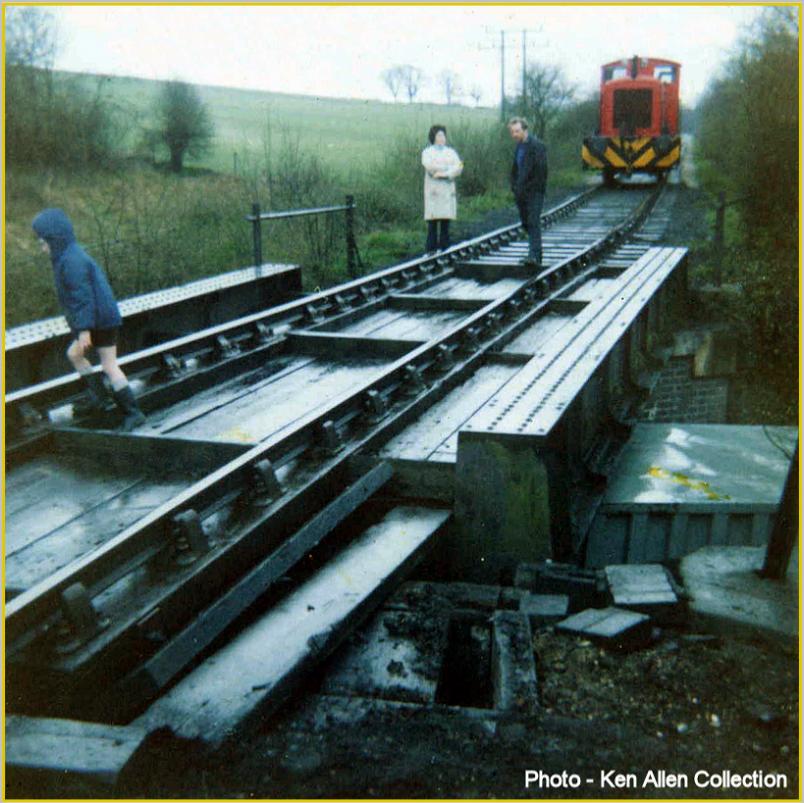 Driver Ken Allen with a local resident surveys the mis-alignment of the track by the lorry stuck under the bridge. This photo shows the damage to the bridge support stonework.