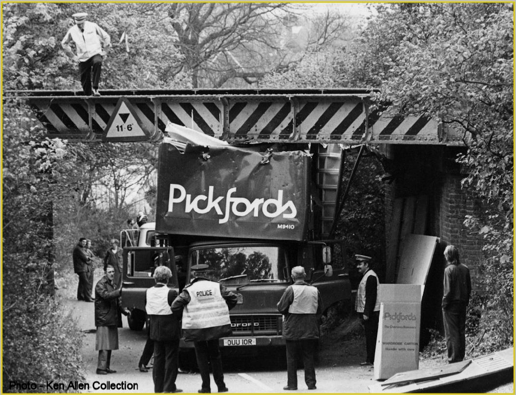 October 31st 1978 and Harpenden Lane Bridge suffered a second accident that year with a furniture removal van stuck under it.