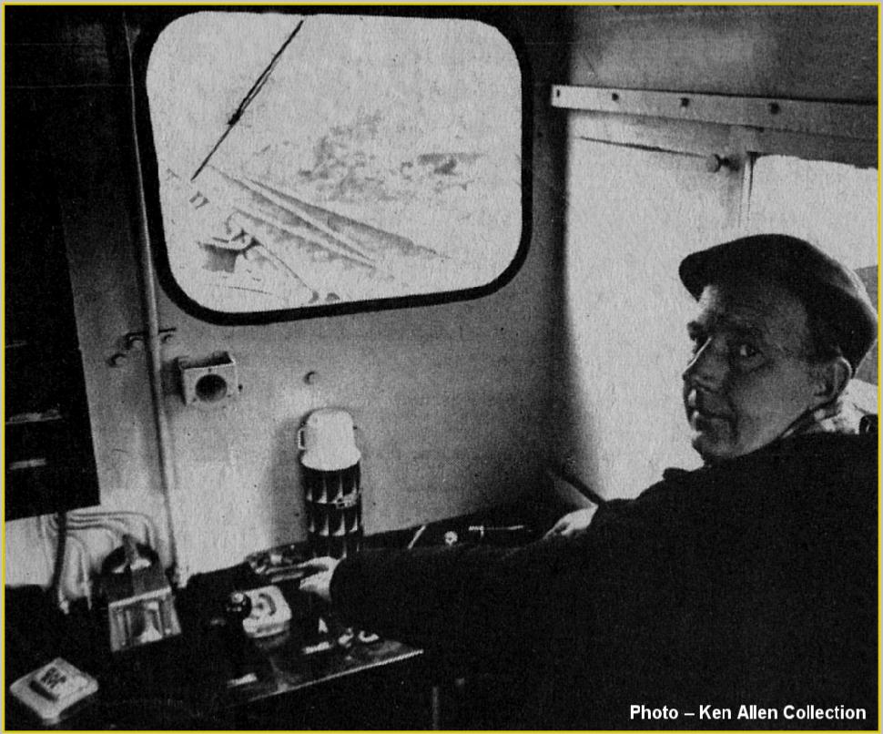Driver Norman Robbins in the cab of Drewry D2203 loco.