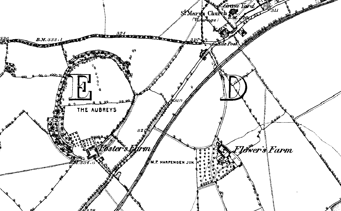 The blue spot marks where Beaumont's Halt was located at a later date.