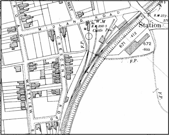 indicating an engine shed & turntable in the station yard.