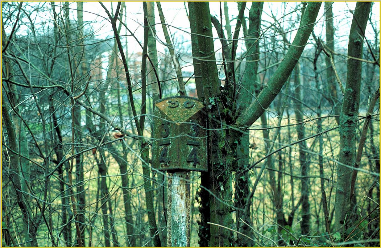30¾ Mile Post close to Three Cherry Trees Lane and Claydales (Hemelite) Sidings.