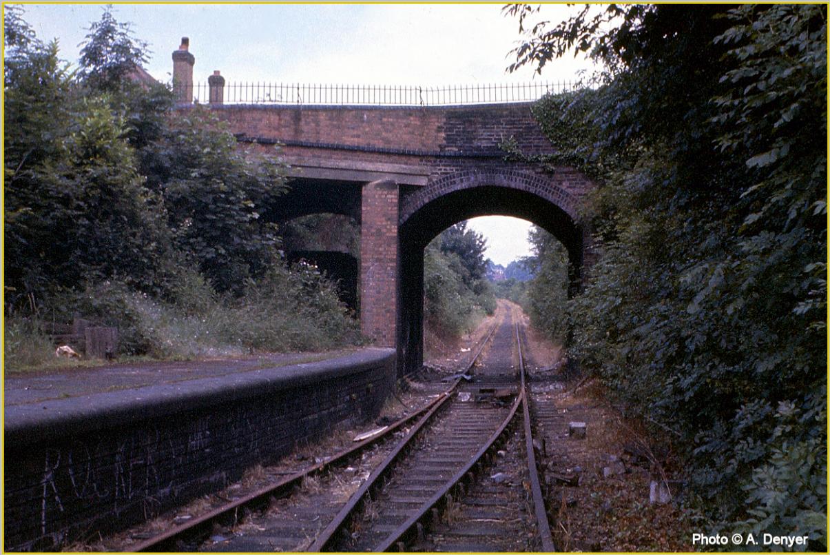 Looking through the arch of Adeyfield Road Bridge up the steep 1:39 gradient from Hemel Hempstead (Midland) Station towards Godwin's Halt in July 1964.