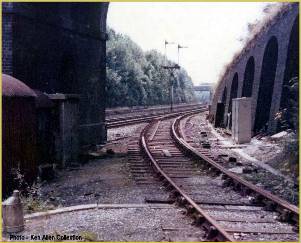 The severed Nickey Line access to the Midland Mainline under Hollybush Lane Bridge in Harpenden.