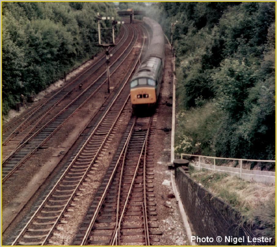 This photo shows the points leading from the Down Fast onto the Nickey Line at Harpenden Junction, photographed from Hollybush Lane Bridge.