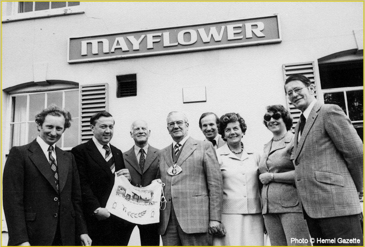 The people in the photo at the plaque unveiling are Ken Allen, Brian Howard, Jack Cannon, Cyril Fowler (Dacorum District Council Chairman), Jim Cannon and three other guests.