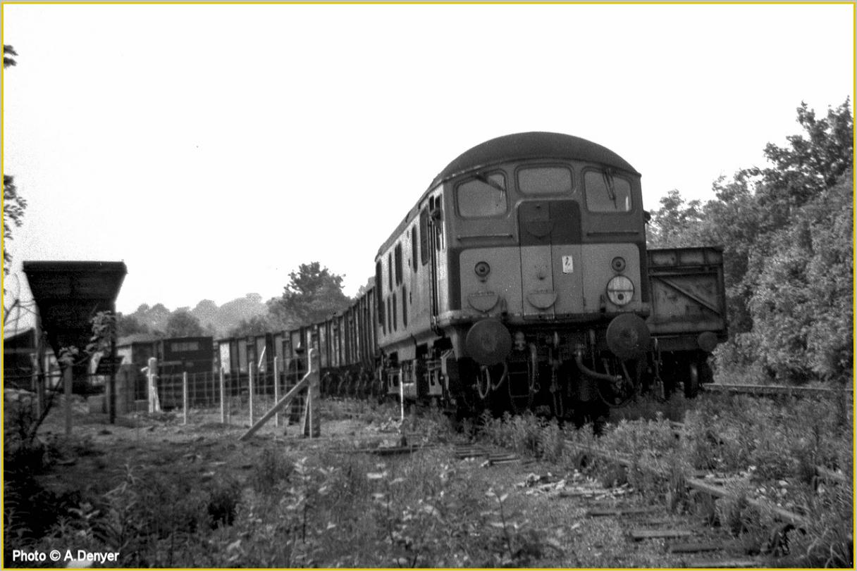D5085 ready to leave Hemelite (Claydales) Sidings with a train of empty ash wagons.
