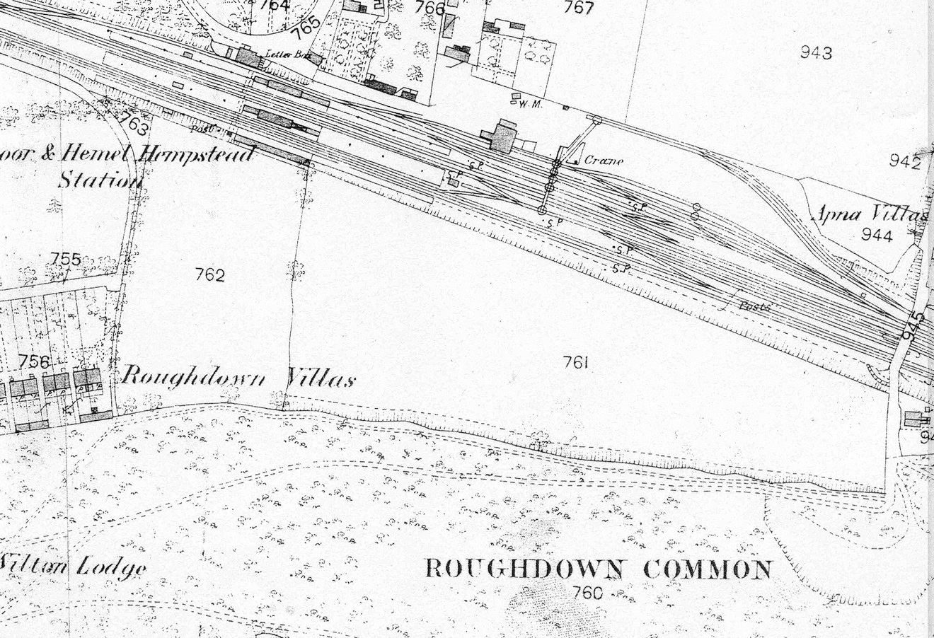 The Nickey Line ran into Boxmoor Yard, but the two railway companies tracks, LNWR and Midland Railway, were kept separate and only connected via a wagon turntable (removed in 1897), shown by the red circle.