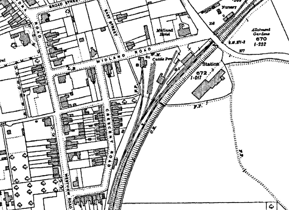 This map shows the Midland Hotel, outside the station, which was built in 1899. The turntable shown in the Station Yard in the 1898 map had been removed by the time of this map.