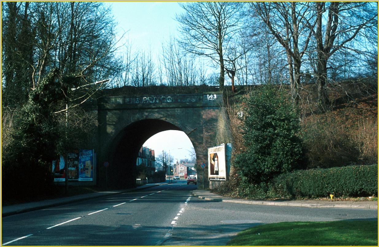 The Nickey Line crossing over the A6 in Harpenden (now the A1081), south side - 1982.