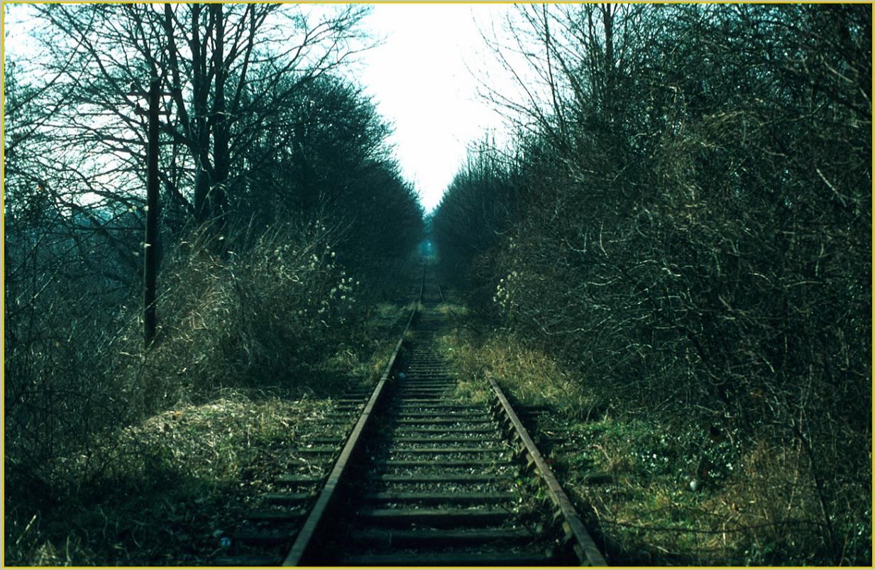 Looking up the 1:37 incline from the A6 Bridge towards Roundwood Halt in 1982.